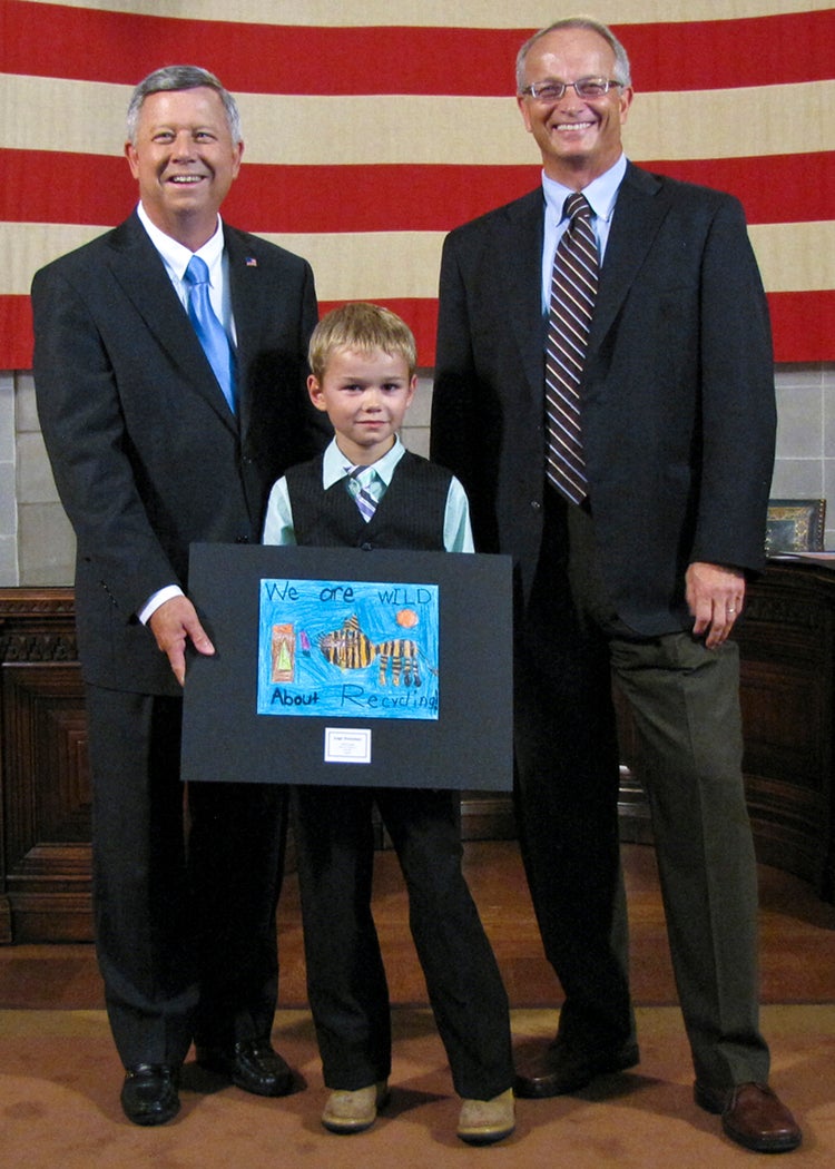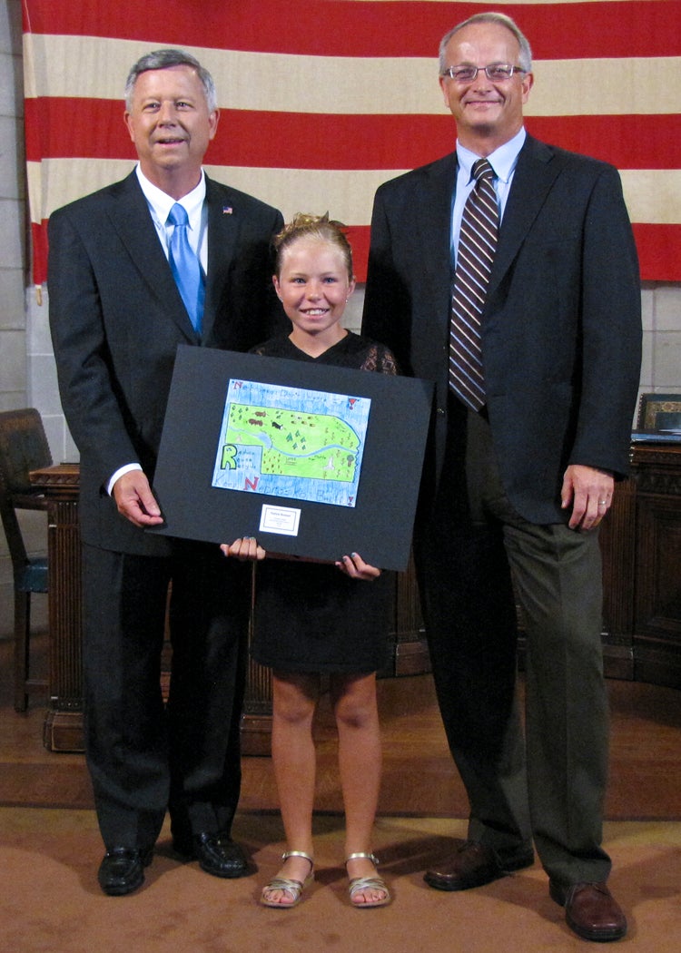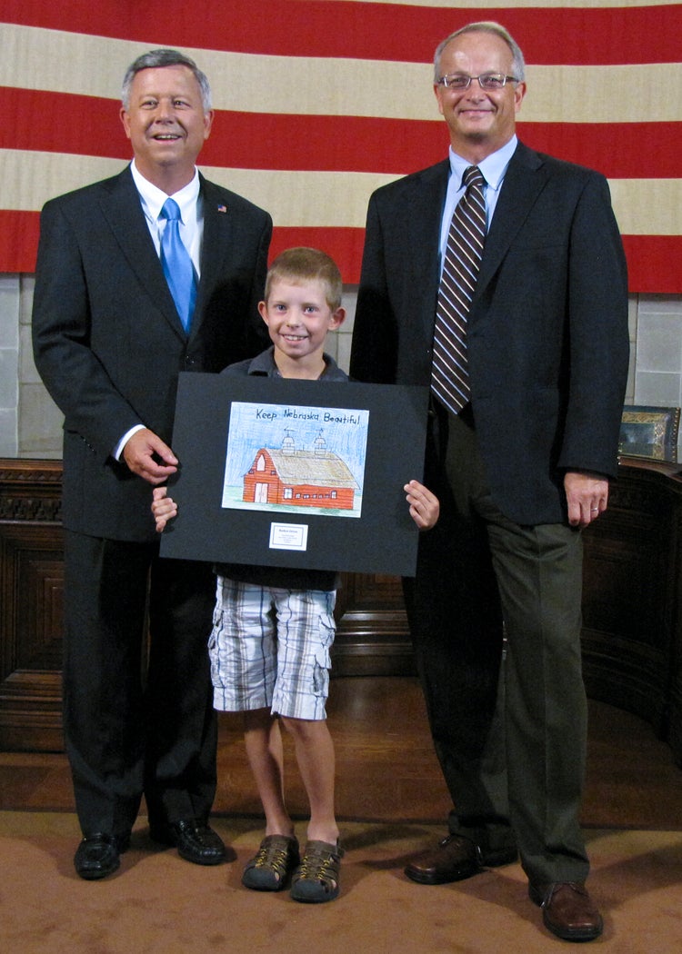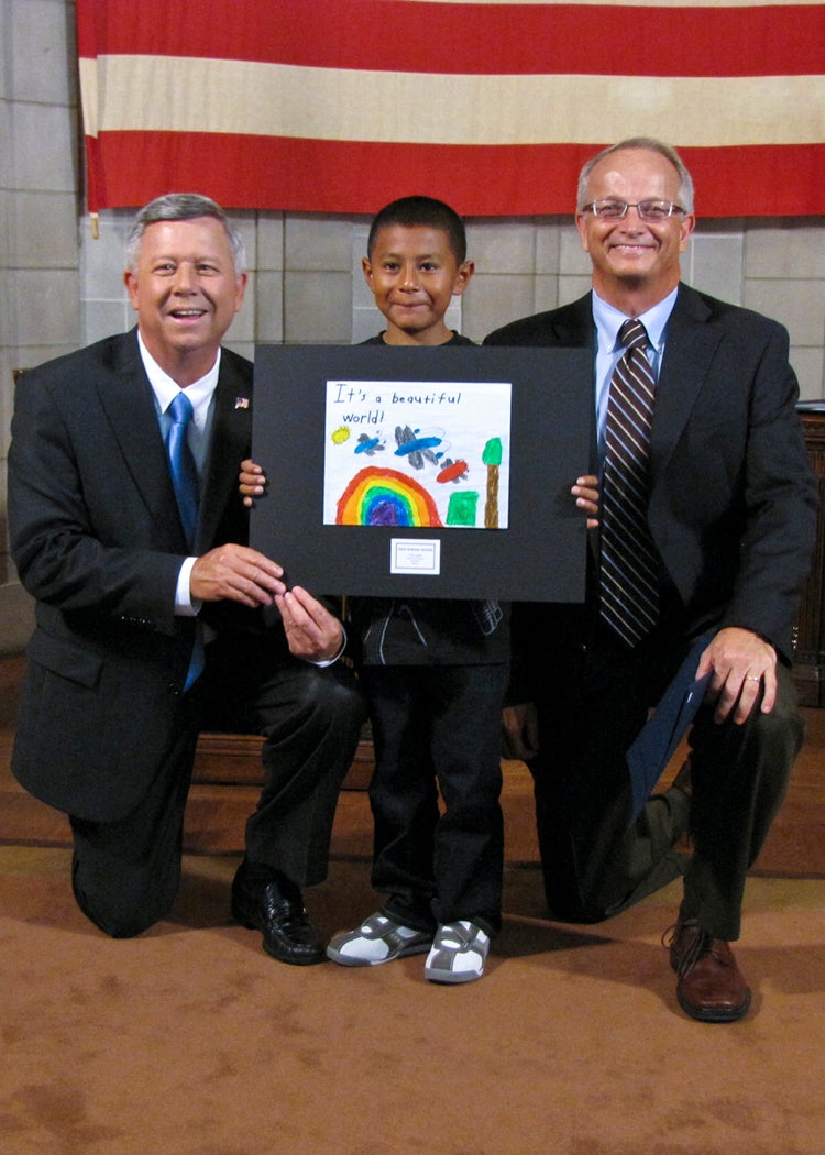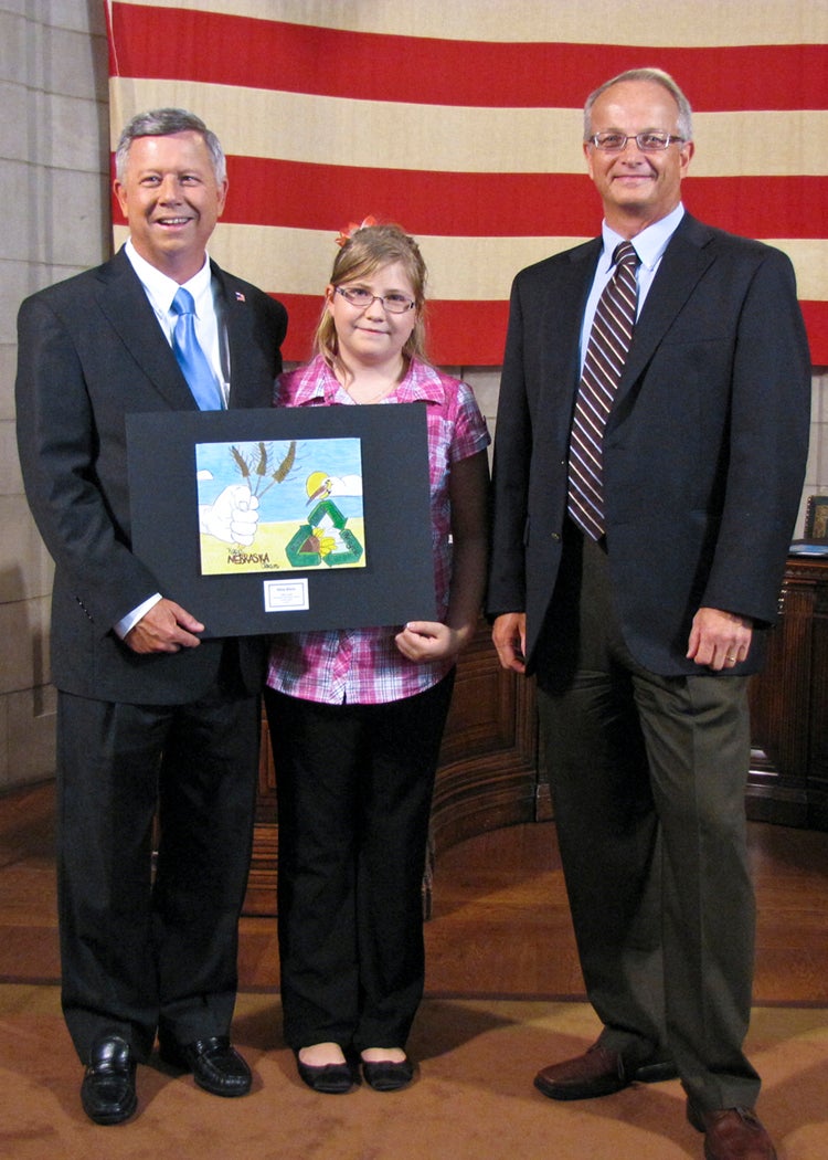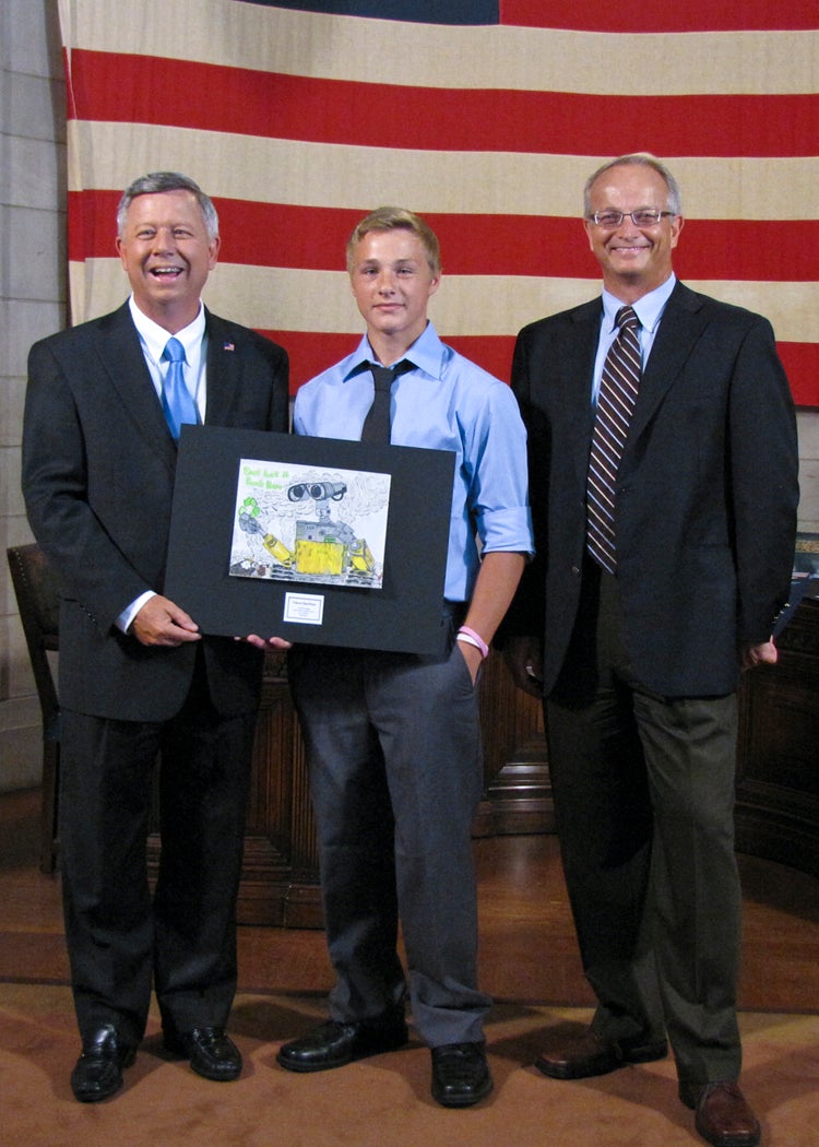 The students whose submissions were selected for the 2014 calendar were invited to a ceremony at the State Capitol on Thursday, August 8, where they were honored by Gov. Dave Heineman and NDEQ Director Mike Linder. Each month, the calendar features one of the 12 winning environmental posters. A 13th winner’s artwork provides the cover for the calendar.