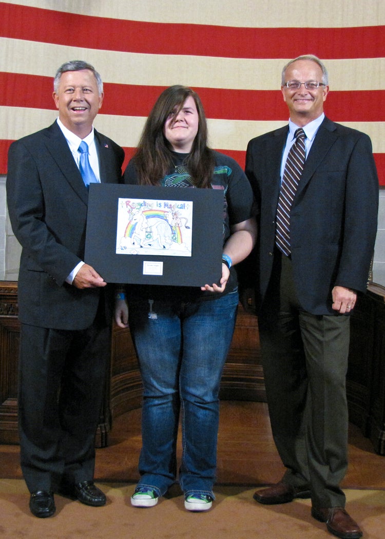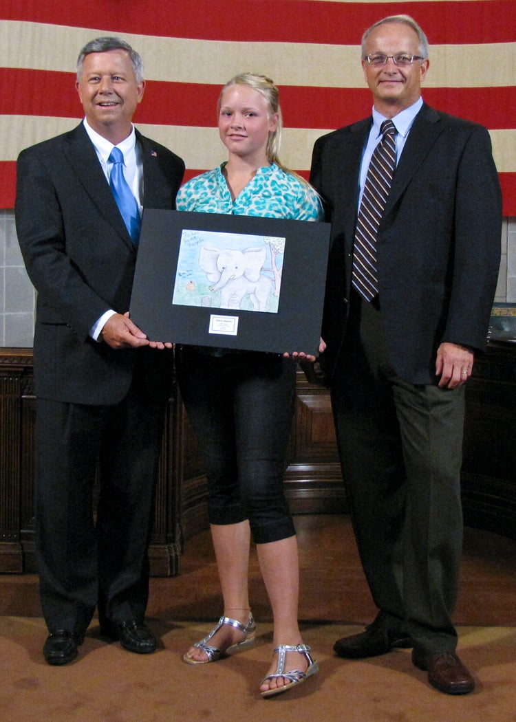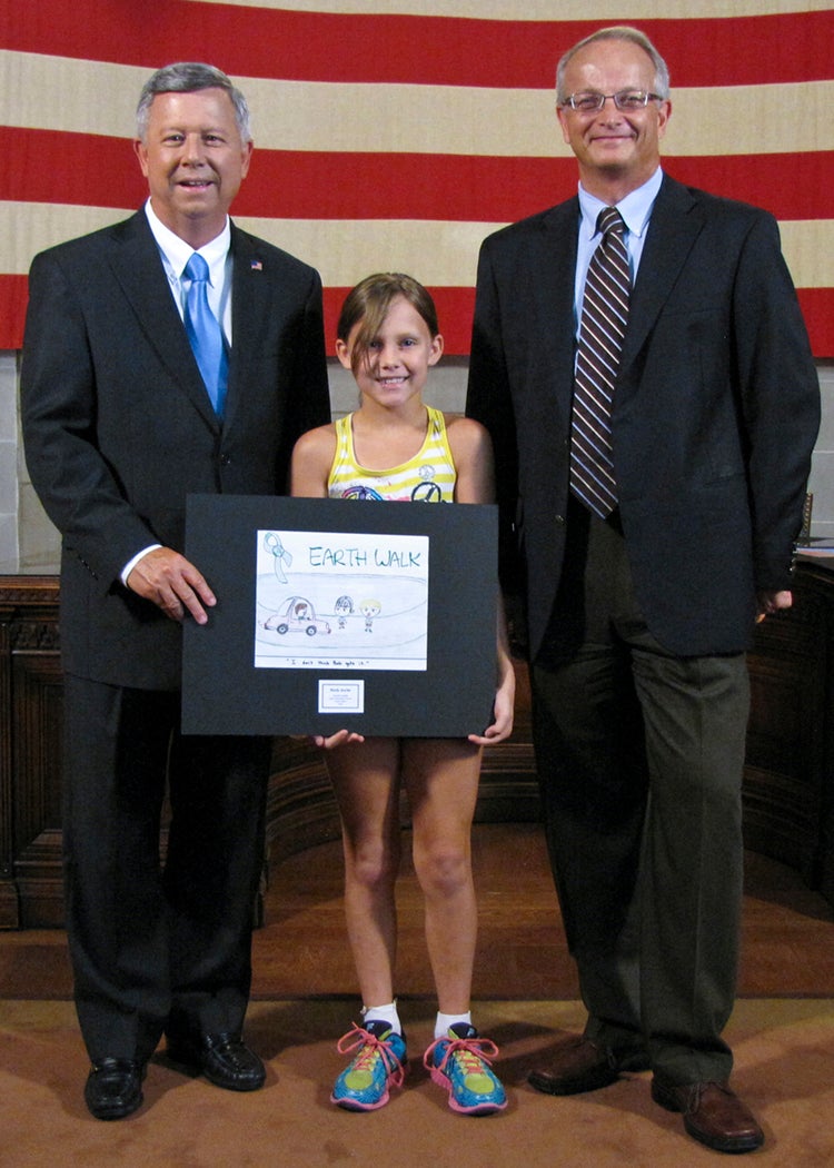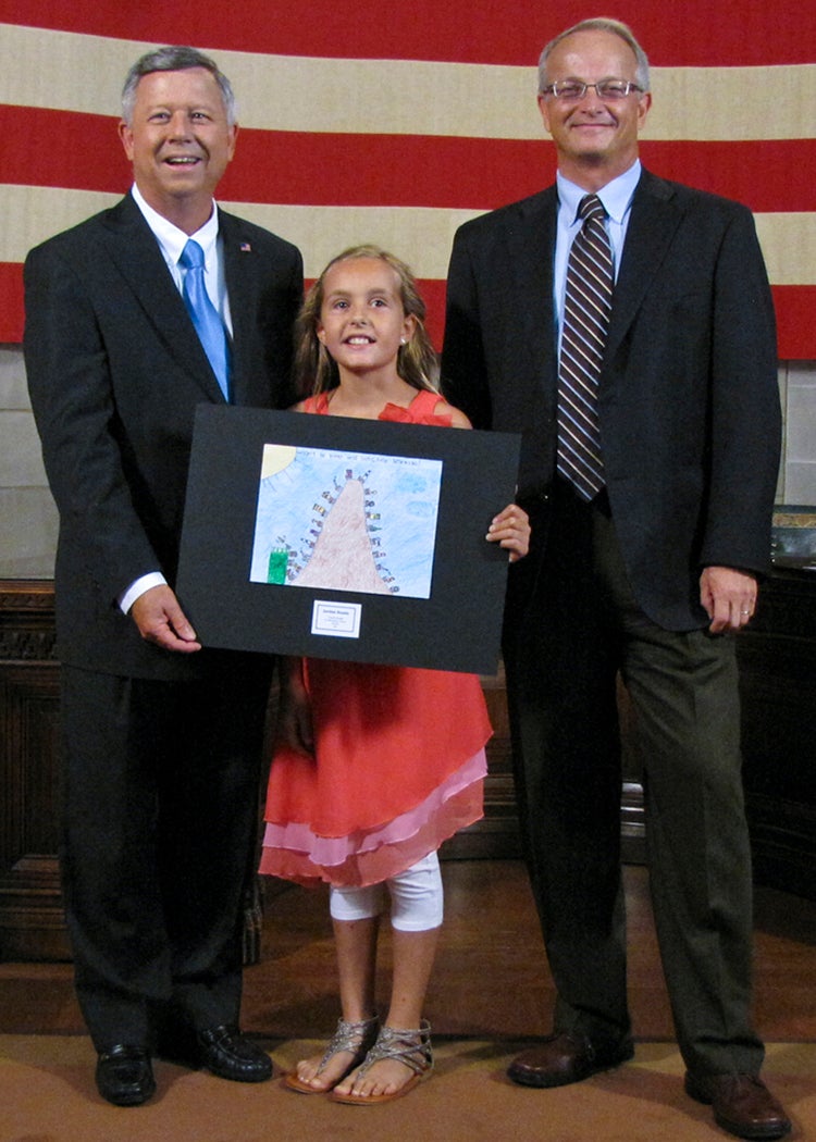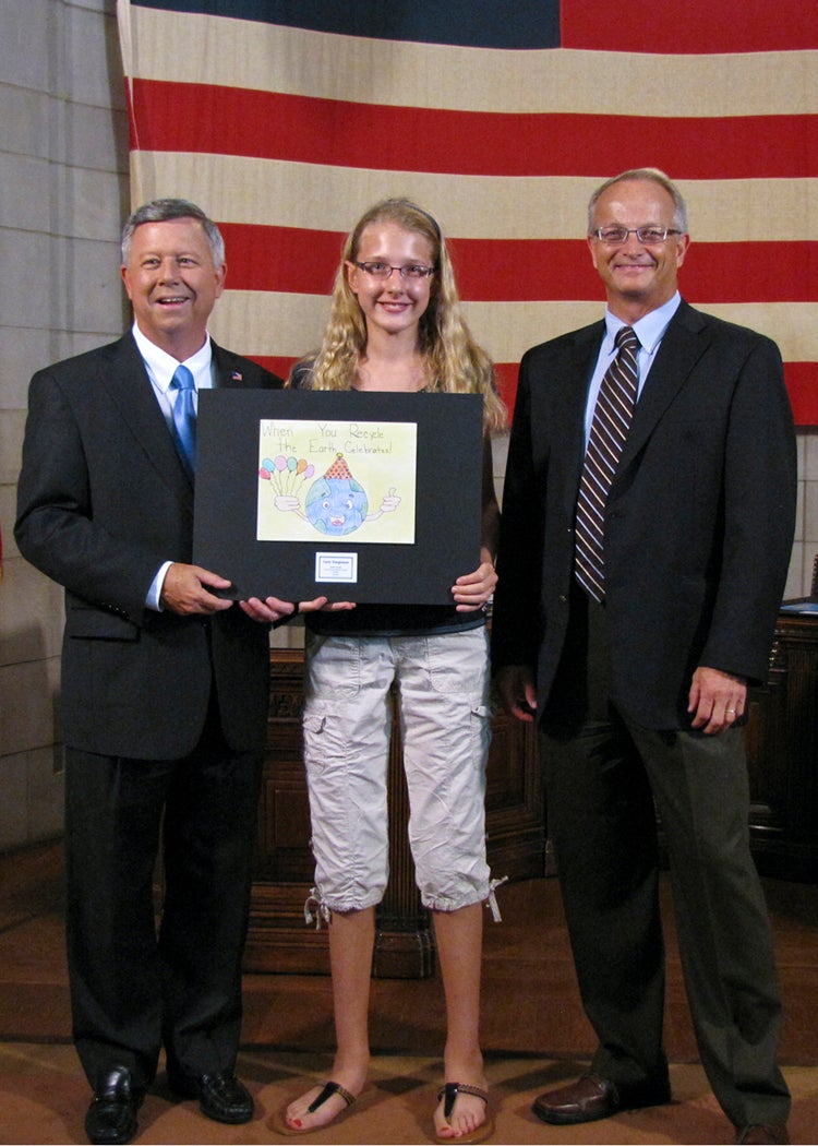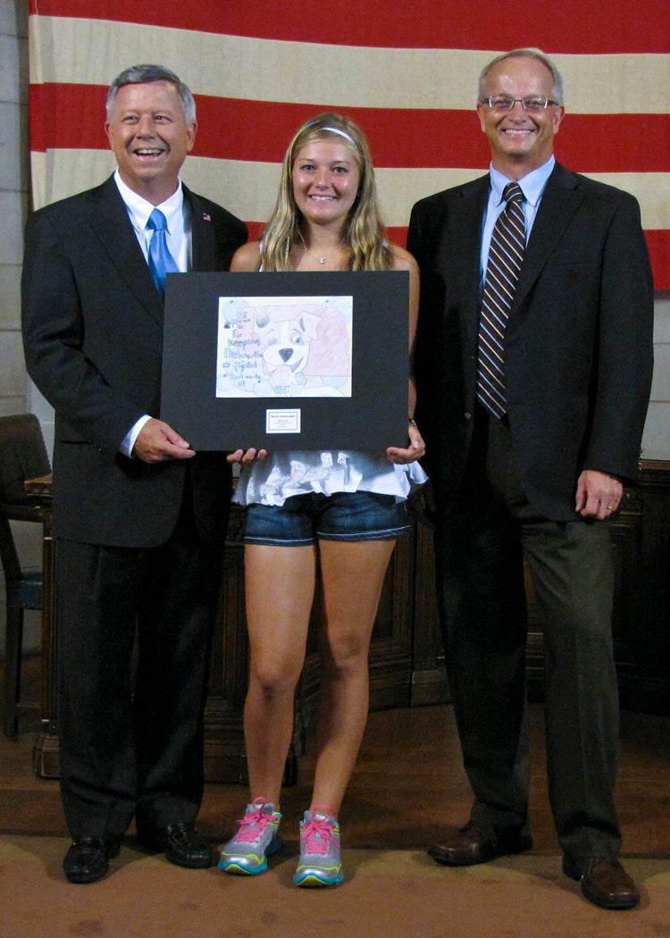 The students whose submissions were selected for the 2014 calendar were invited to a ceremony at the State Capitol on Thursday, August 8, where they were honored by Gov. Dave Heineman and NDEQ Director Mike Linder. Each month, the calendar features one of the 12 winning environmental posters. A 13th winner’s artwork provides the cover for the calendar.