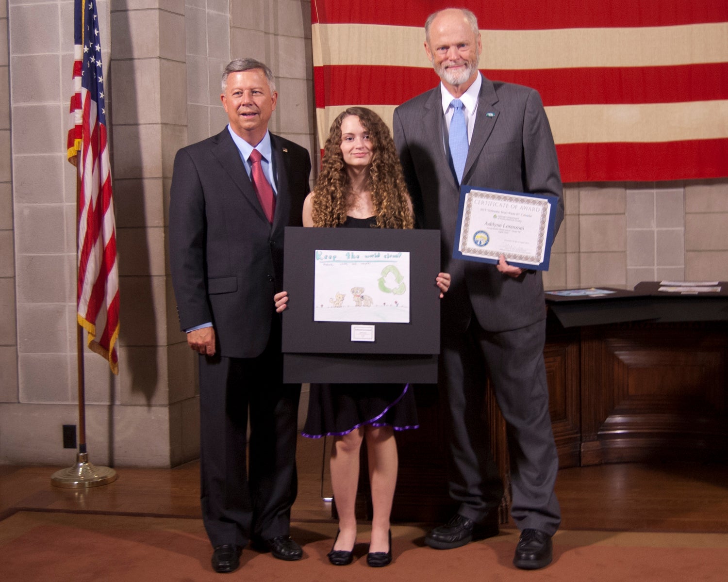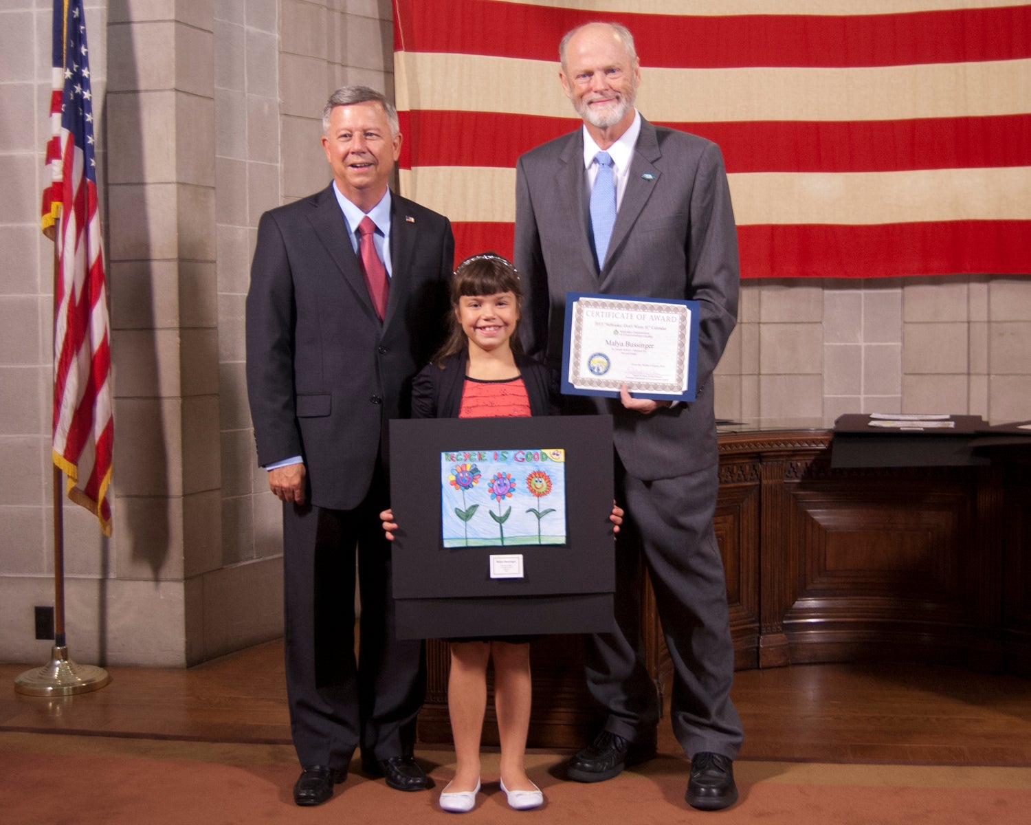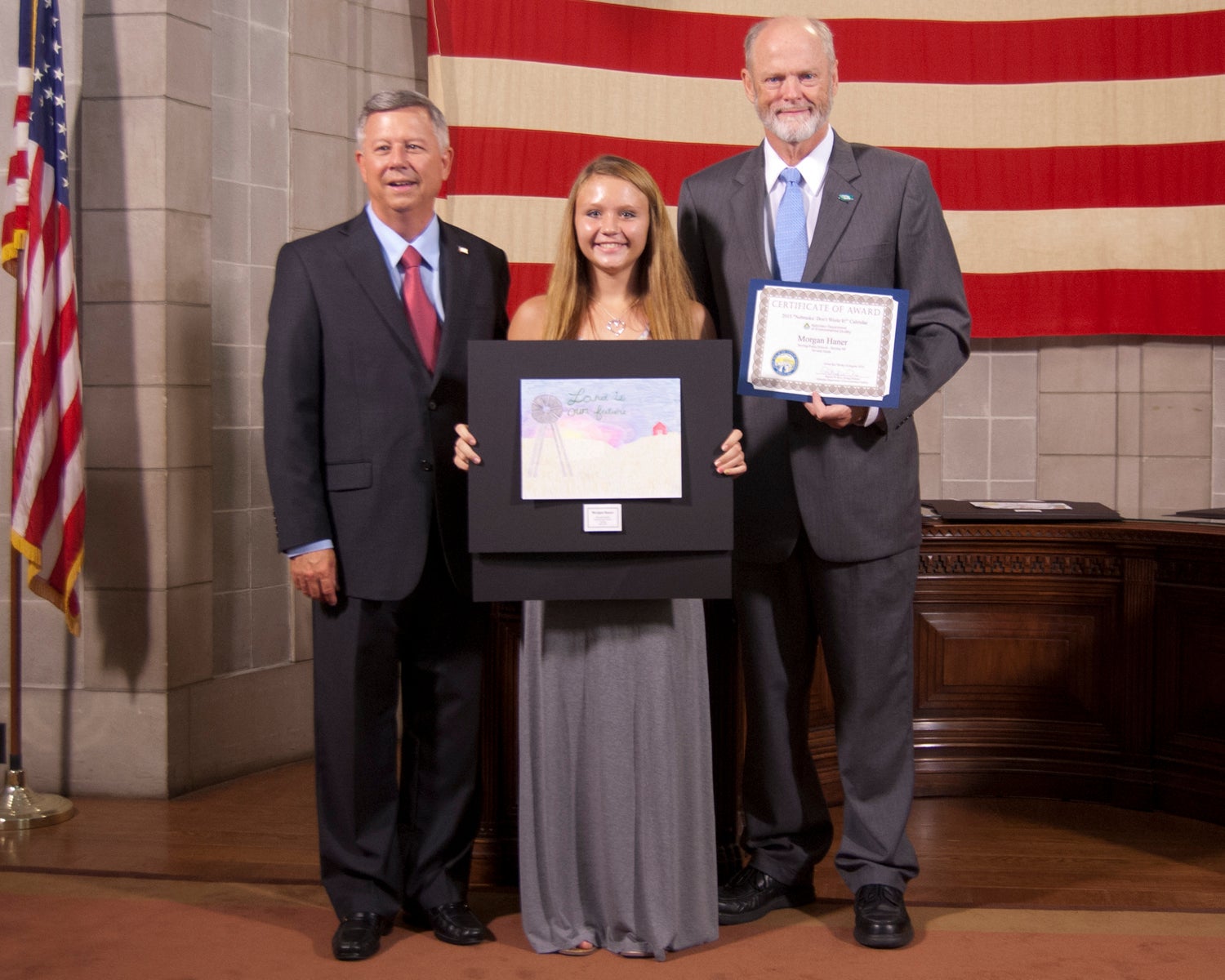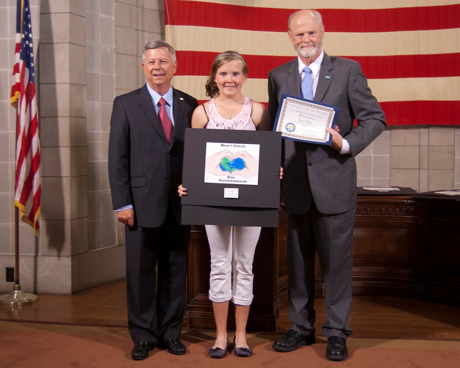 The students whose submissions were selected for the 2015 calendar were invited to a ceremony at the State Capitol on Thursday, August 7, where they were honored by Gov. Dave Heineman and NDEQ Acting Director Patrick Rice. Each month, the calendar features one of the 12 winning environmental posters. A 13th winner’s artwork provides the cover for the calendar.