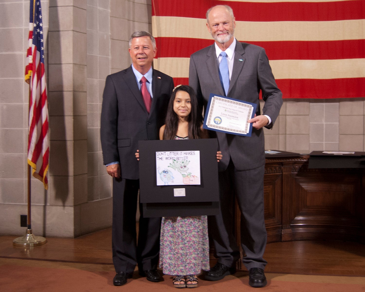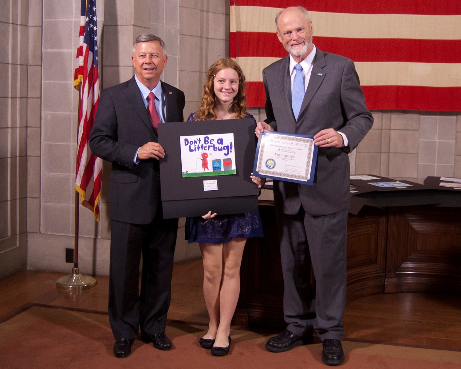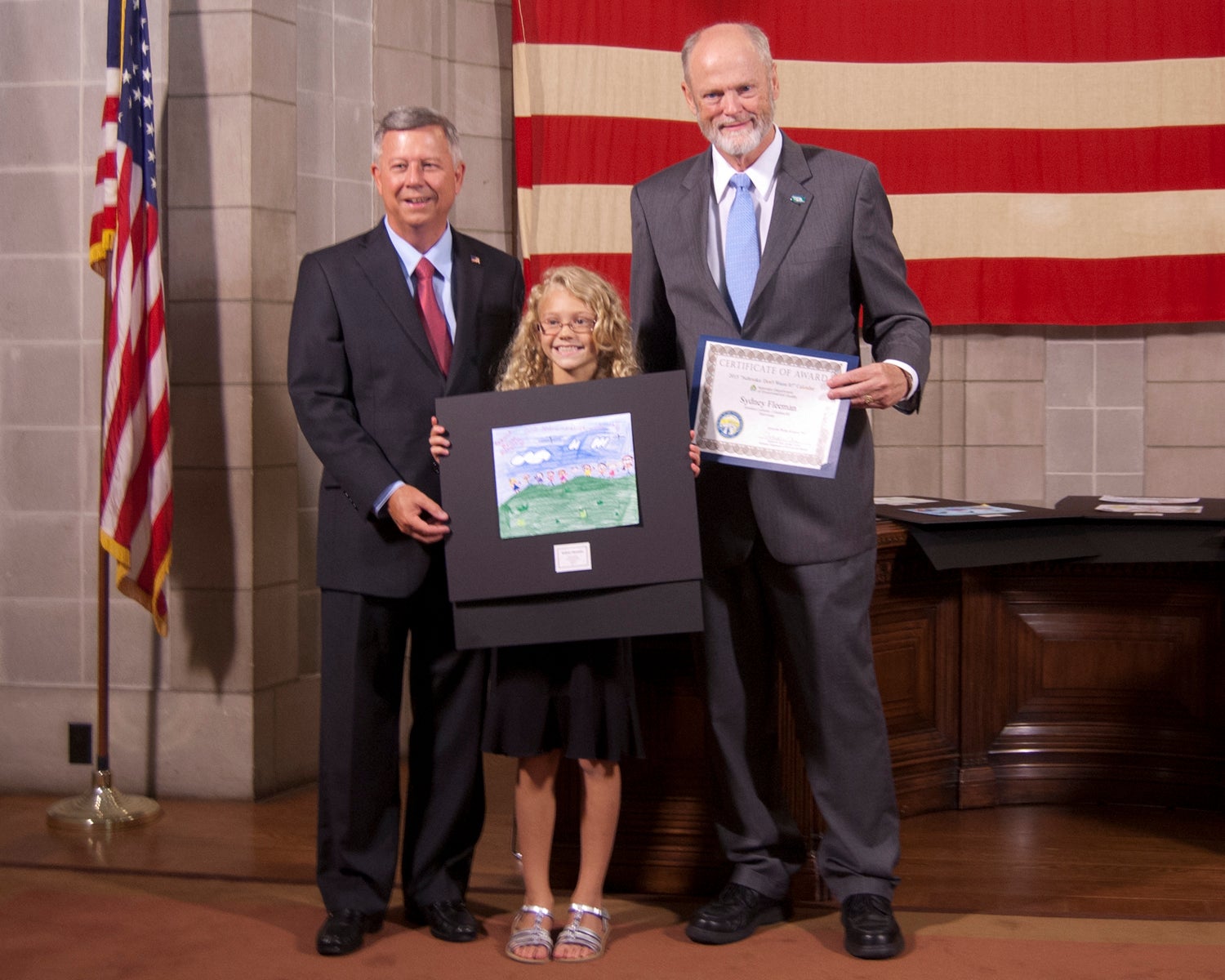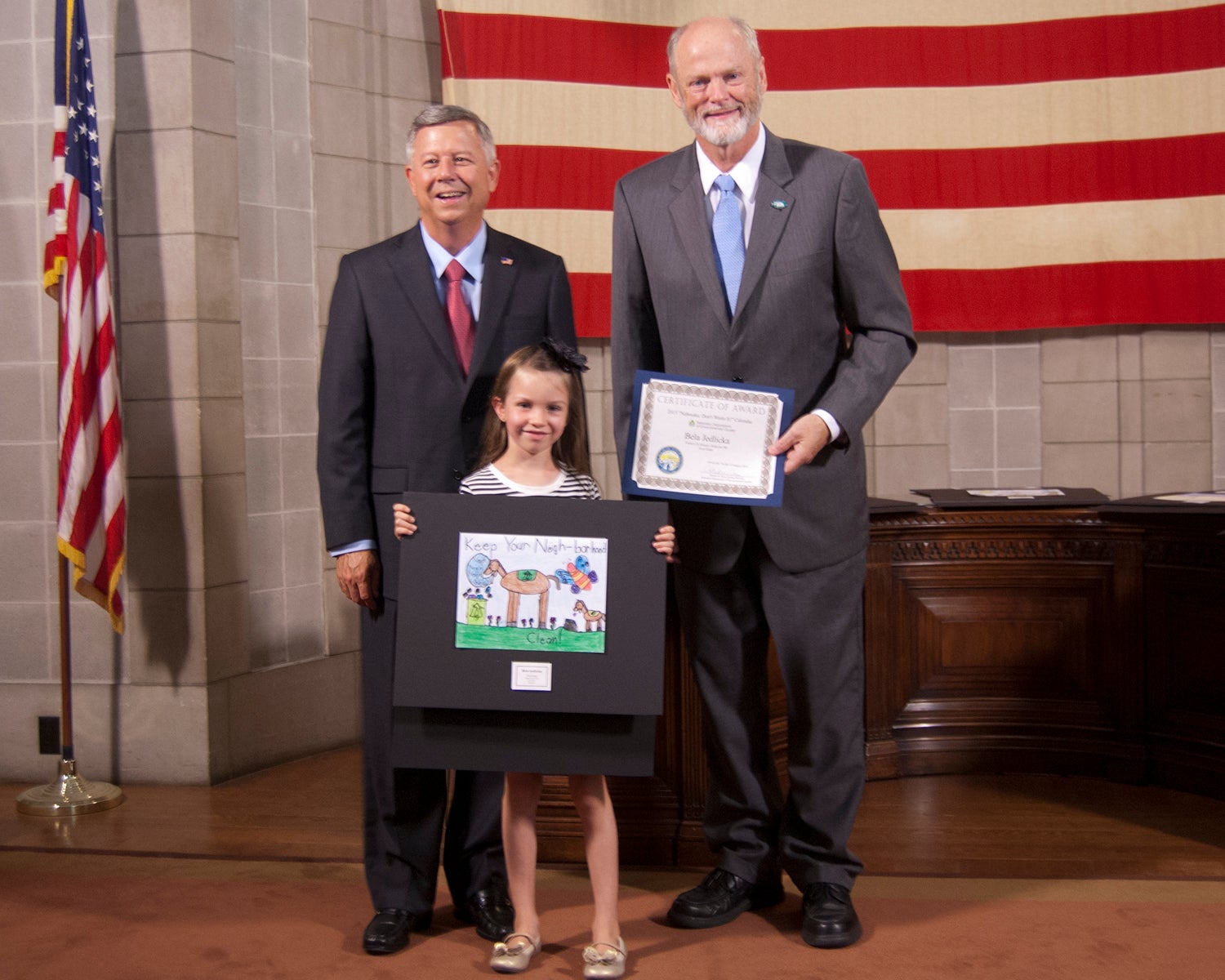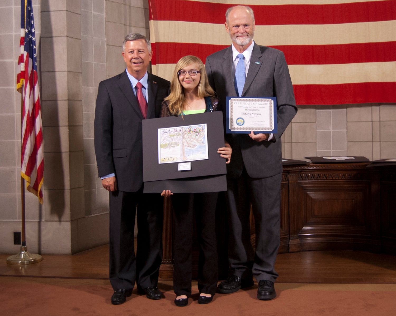 The students whose submissions were selected for the 2015 calendar were invited to a ceremony at the State Capitol on Thursday, August 7, where they were honored by Gov. Dave Heineman and NDEQ Acting Director Patrick Rice. Each month, the calendar features one of the 12 winning environmental posters. A 13th winner’s artwork provides the cover for the calendar.