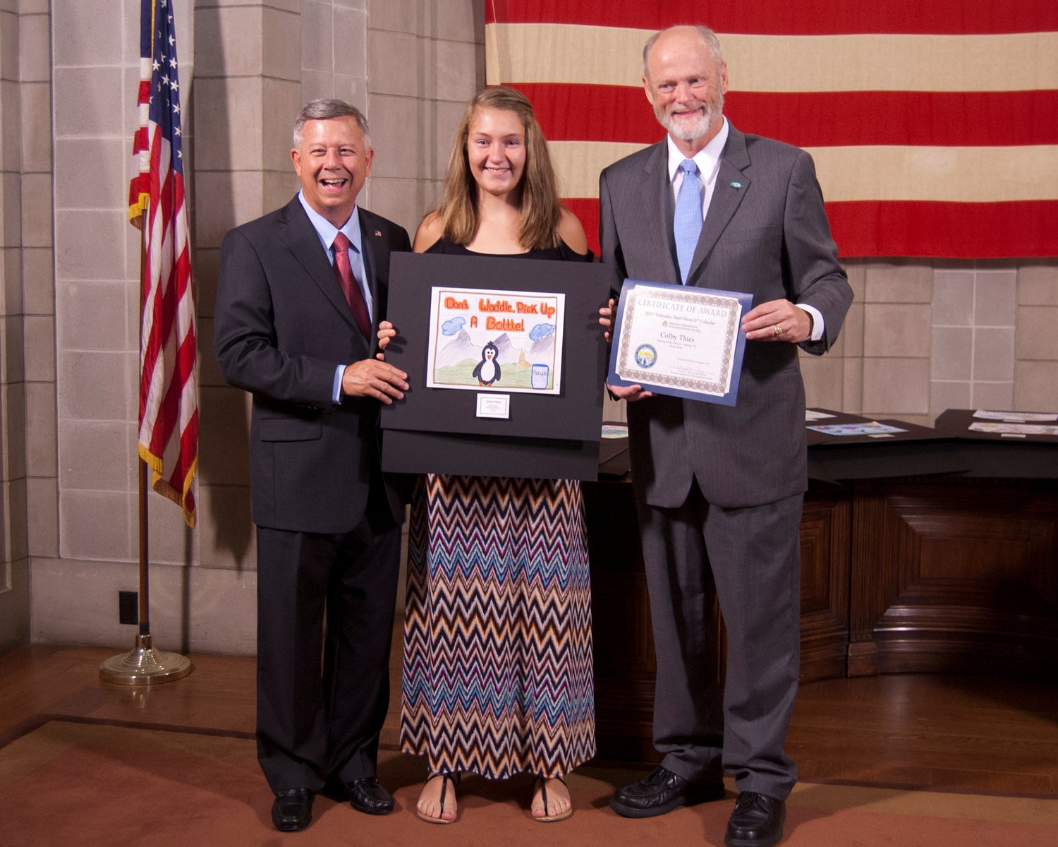 Below are photos of the individual contest winners, taken at the Aug. 7 ceremony. In each photo, Governor Dave Heineman is at left, and NDEQ Acting Director Patrick Rice is at right. The last photo is a shot of the entire group.)