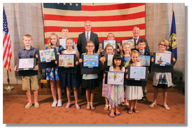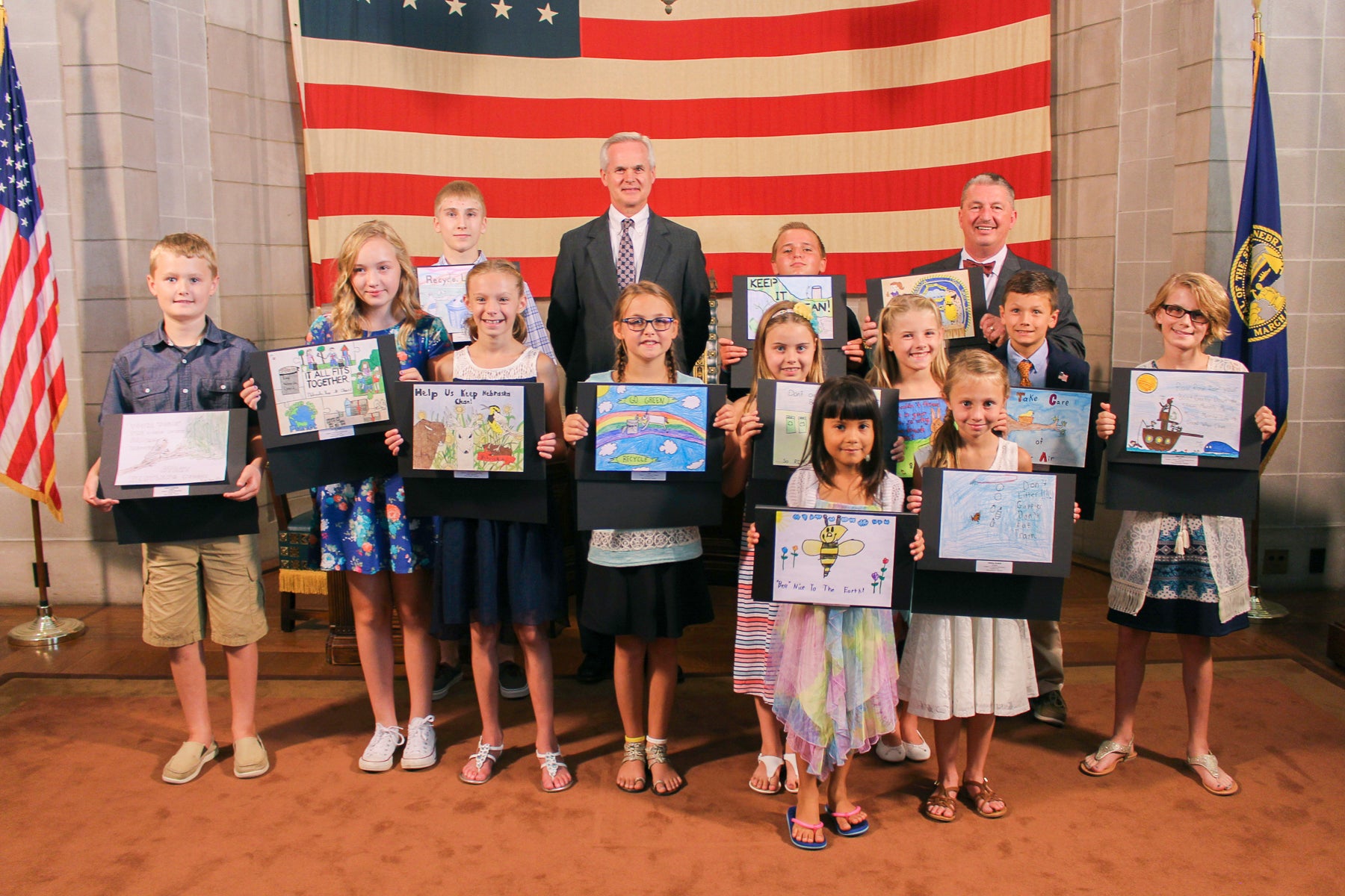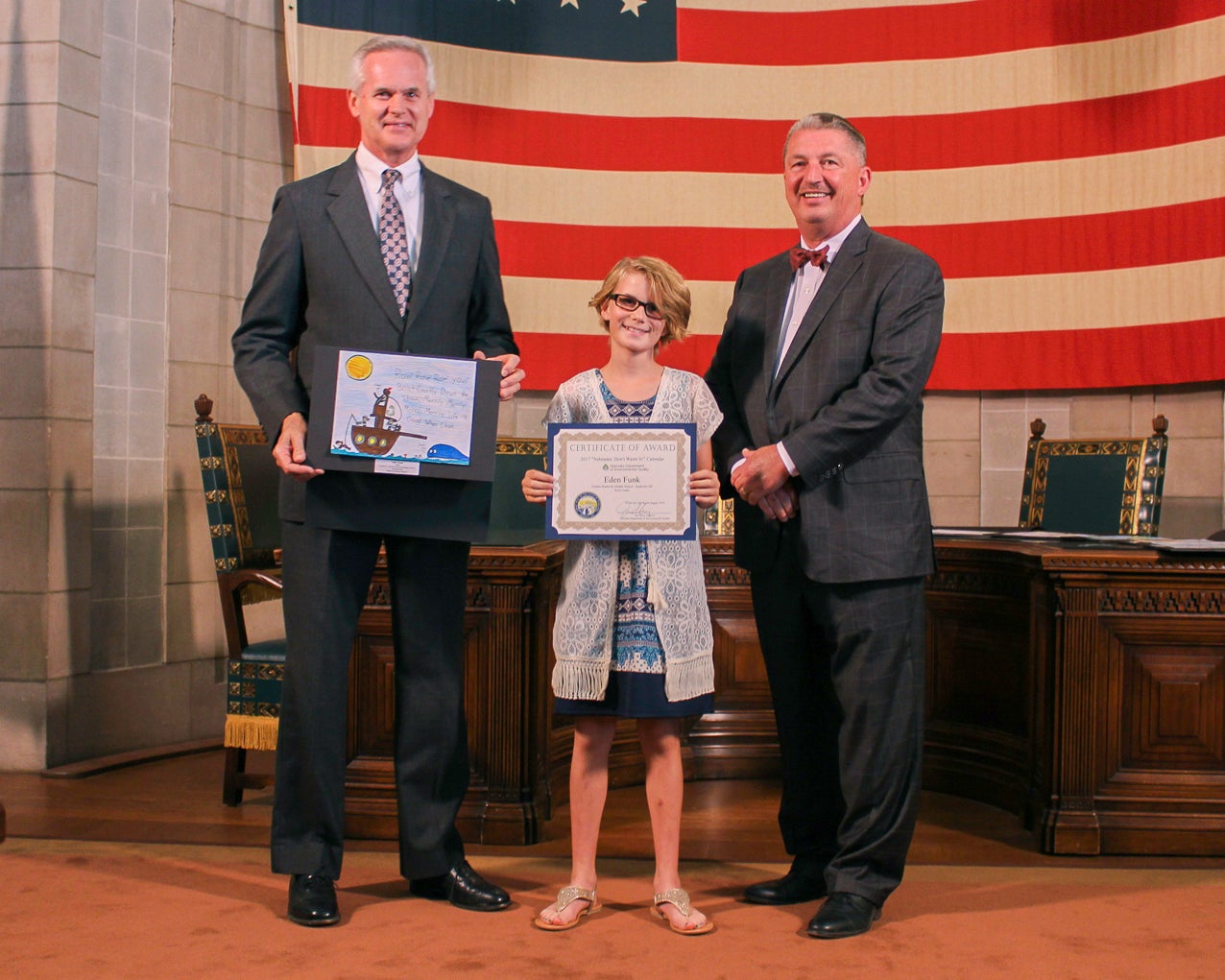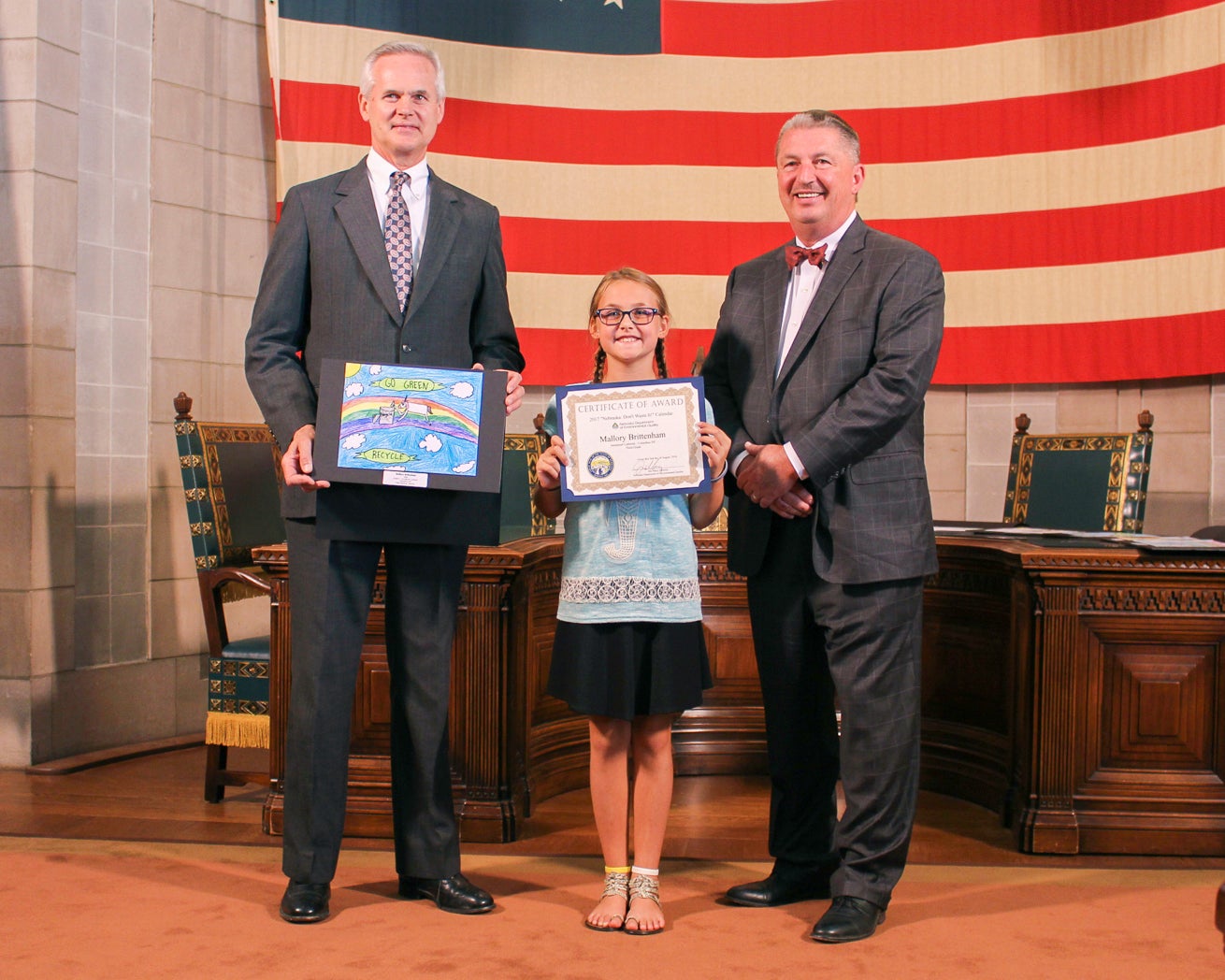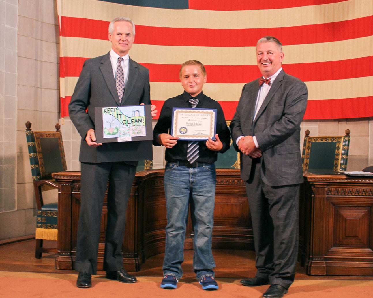 The students whose submissions were selected for the 2017 calendar were invited to a ceremony at the State Capitol on Tuesday, August 2, where they were honored by Lt. Gov. Mike Foley and NDEQ Director Jim Macy. Each month, the calendar features one of the 12 winning environmental posters. A 13th winner’s artwork provides the cover for the calendar.