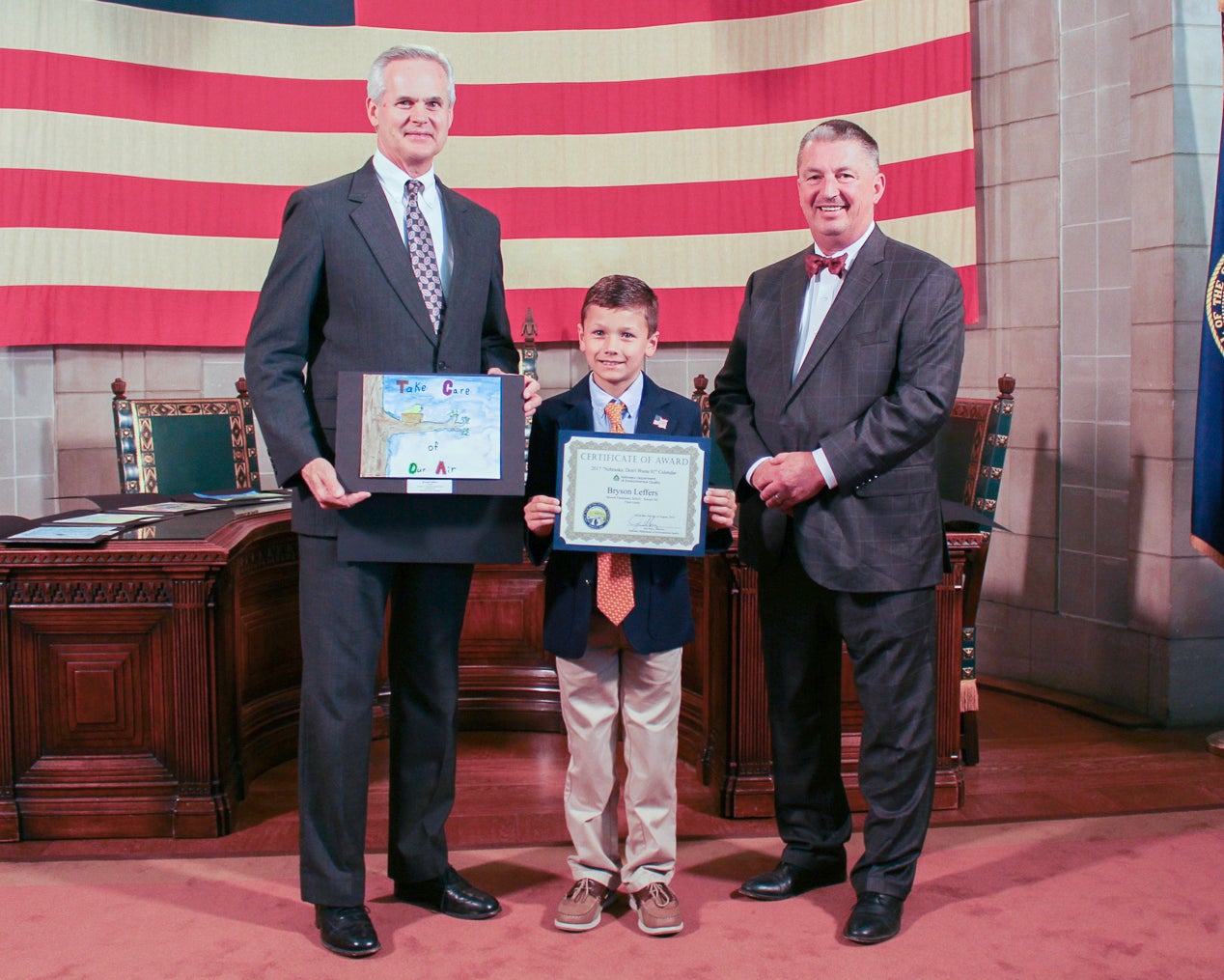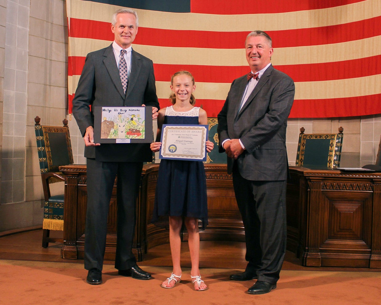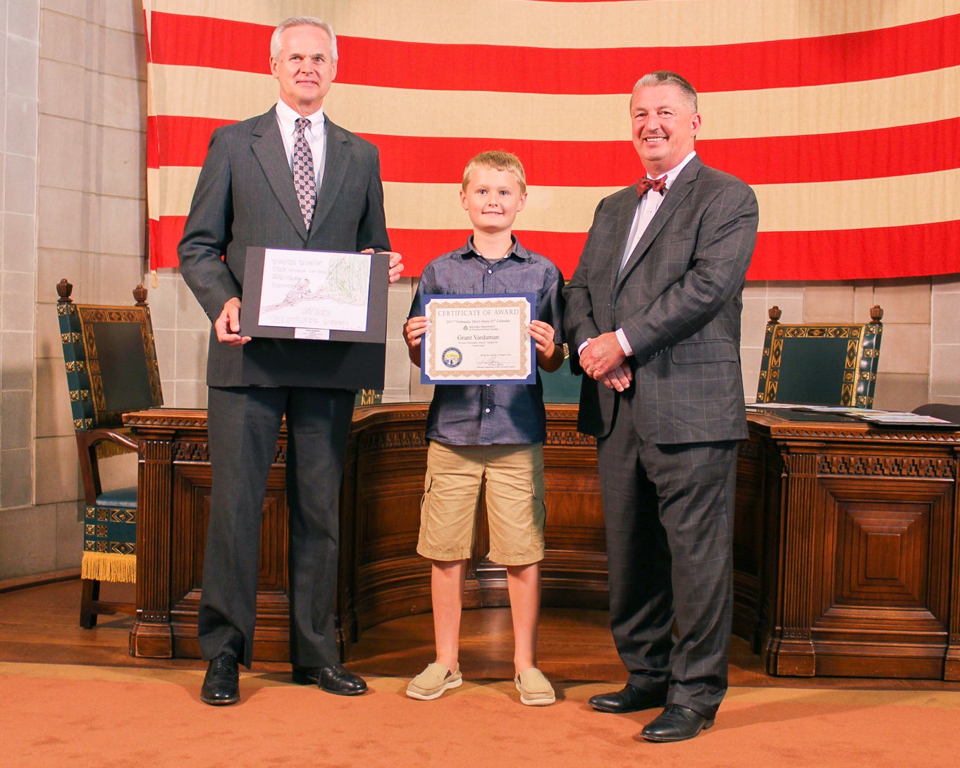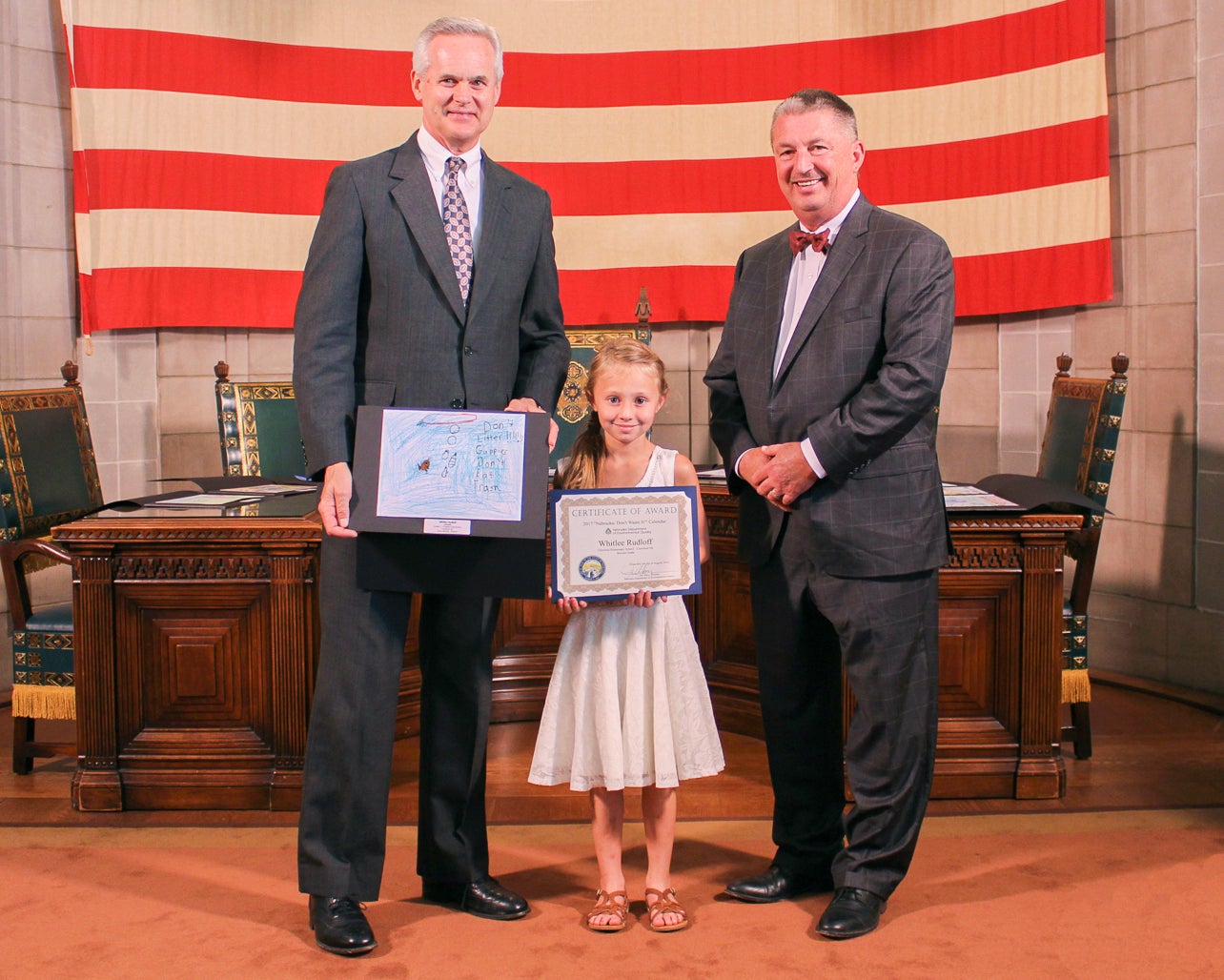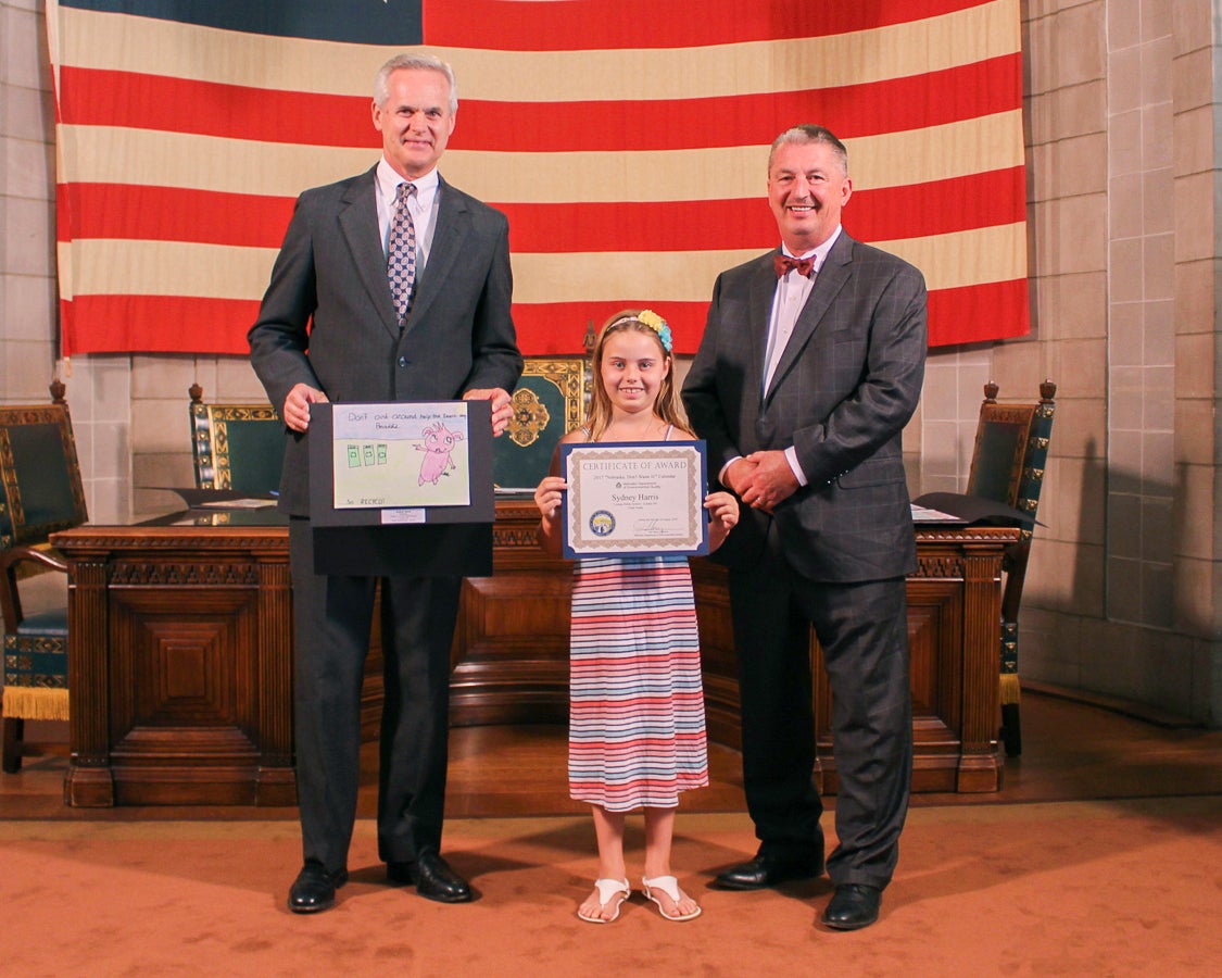 The students whose submissions were selected for the 2017 calendar were invited to a ceremony at the State Capitol on Tuesday, August 2, where they were honored by Lt. Gov. Mike Foley and NDEQ Director Jim Macy. Each month, the calendar features one of the 12 winning environmental posters. A 13th winner’s artwork provides the cover for the calendar.