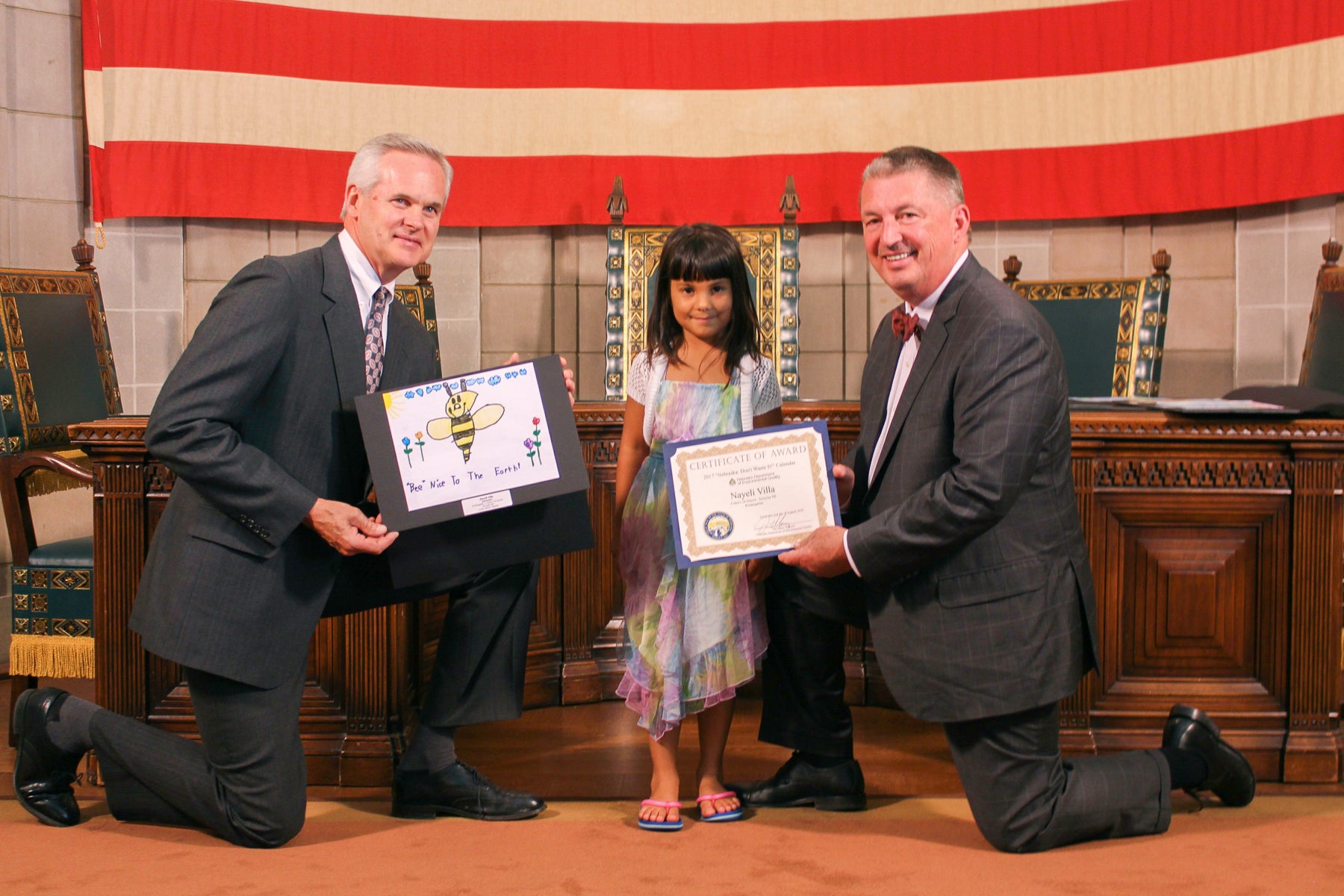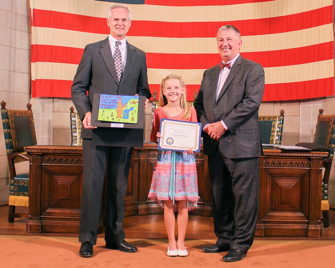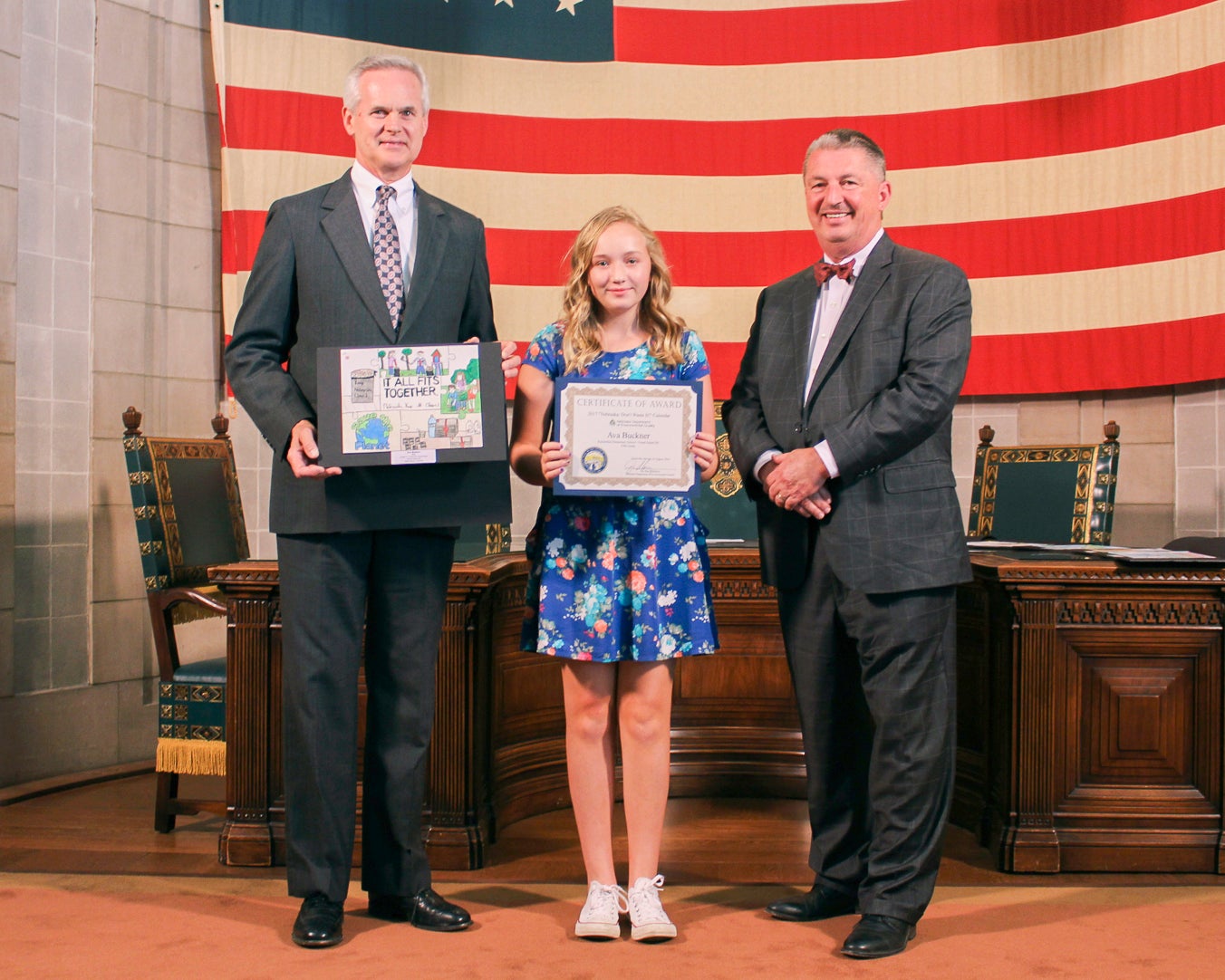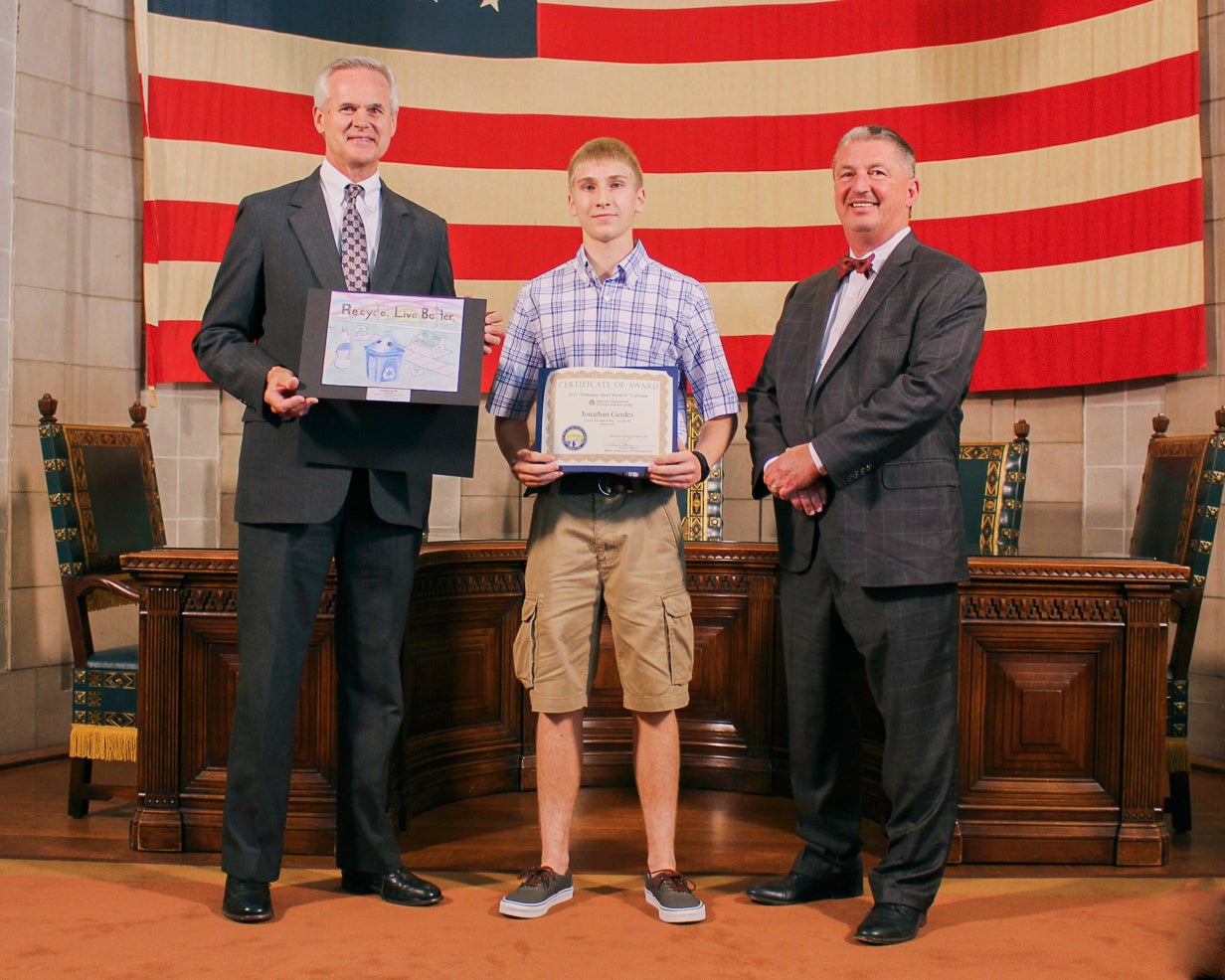 The students whose submissions were selected for the 2017 calendar were invited to a ceremony at the State Capitol on Tuesday, August 2, where they were honored by Lt. Gov. Mike Foley and NDEQ Director Jim Macy. Each month, the calendar features one of the 12 winning environmental posters. A 13th winner’s artwork provides the cover for the calendar.