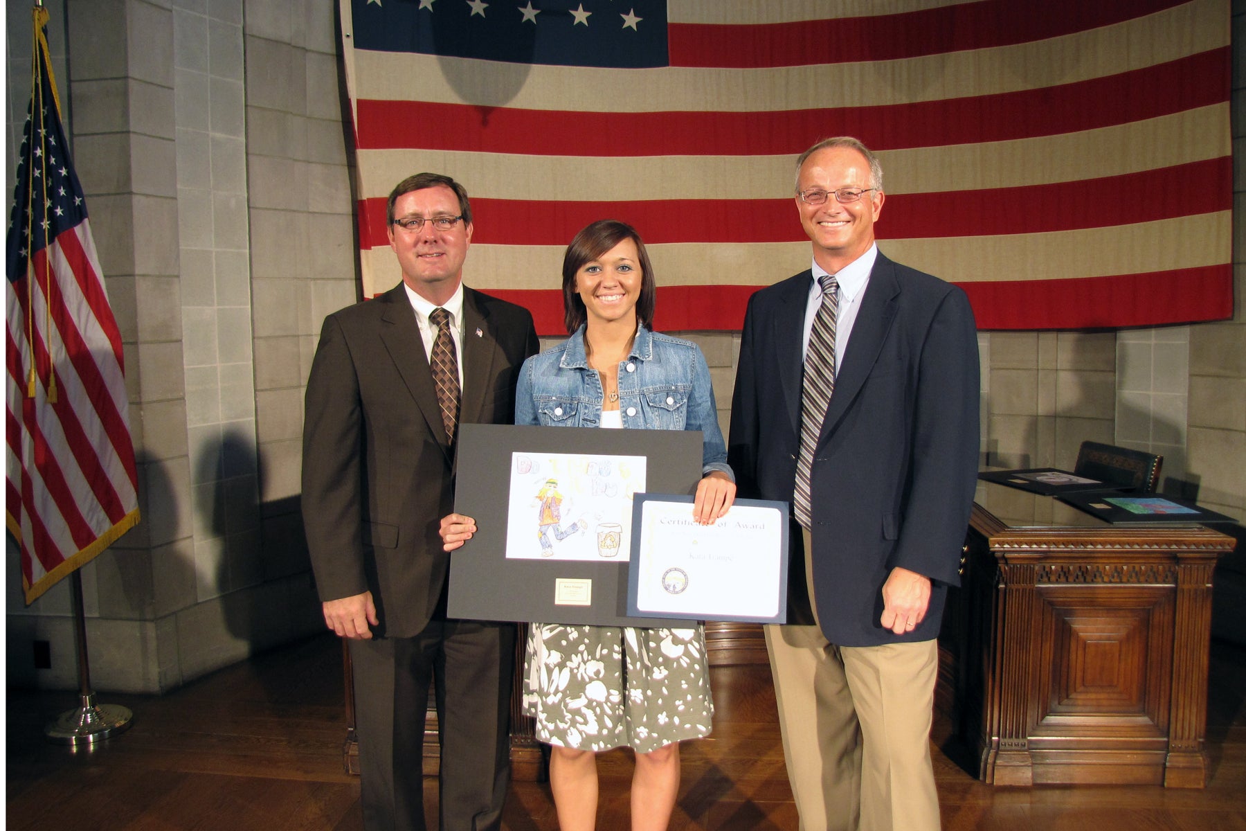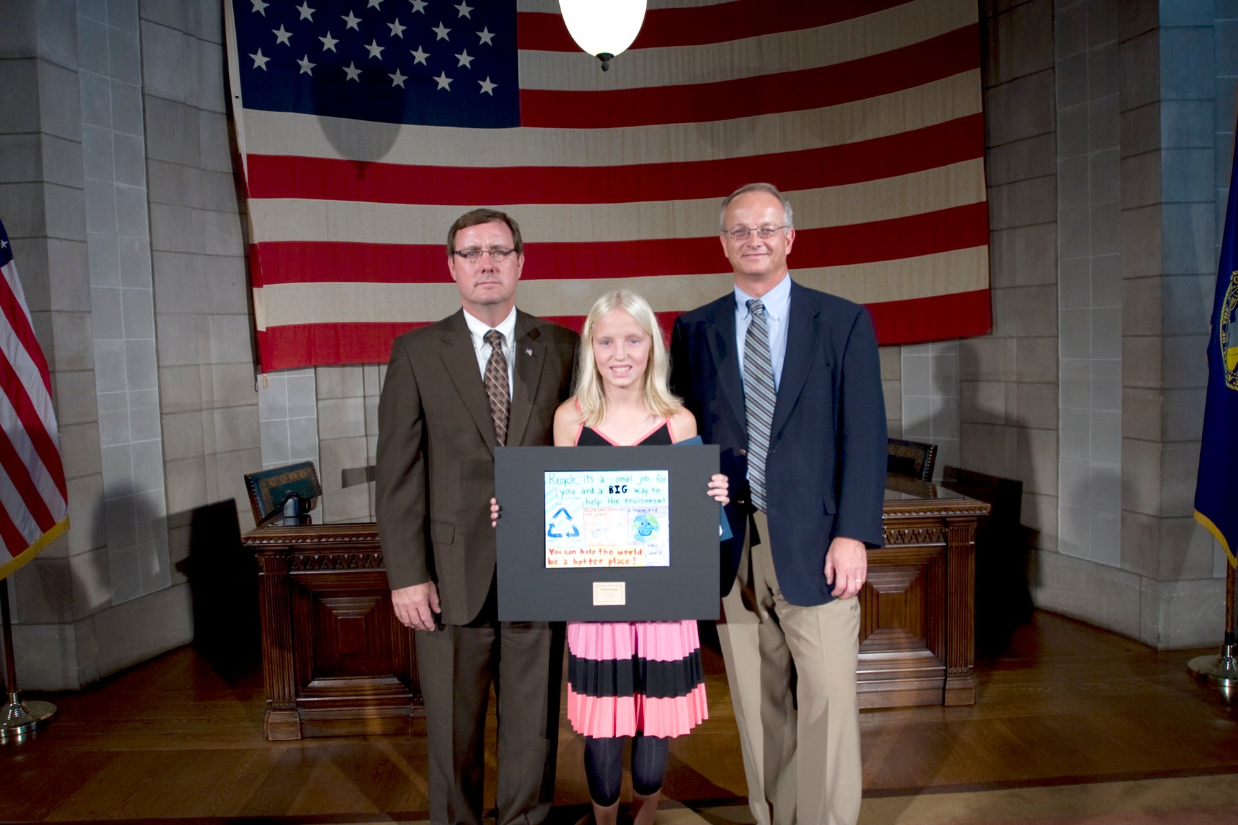 The students whose submissions were selected for the 2010 calendar were invited to a ceremony at the State Capitol on Thursday, August 13, where they were honored by Lt. Gov. Rick Sheehy and NDEQ Director Mike Linder. Each month, the calendar will feature one of the 12 winning environmental posters. A 13th winner’s artwork will provide the cover for the calendar.